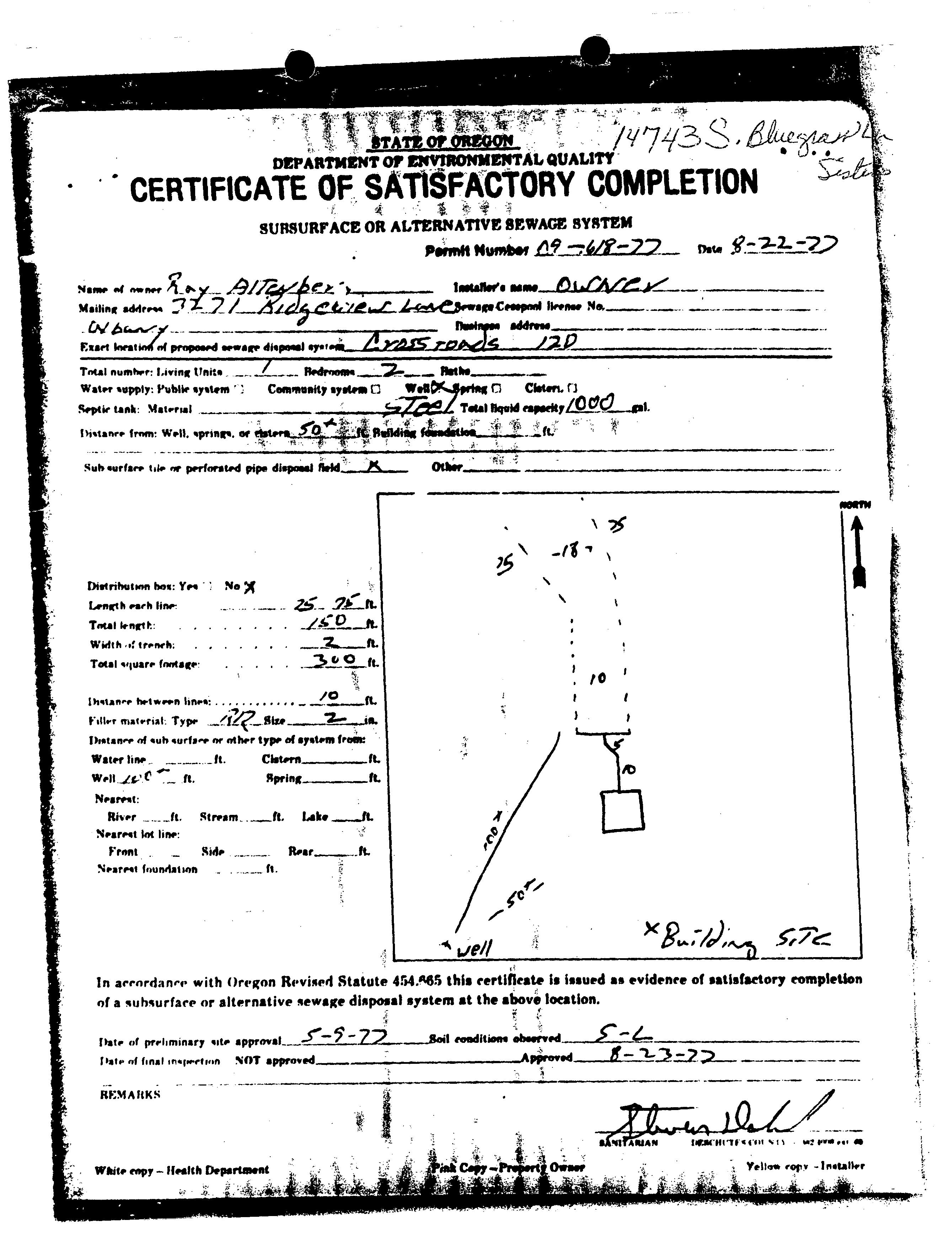 In accordance with ( linen Revised Statute 454. 665 this certificate is issued as evidence of satisfactory completion of a nuh+ uttaee or alternative sewage disposal system at the above location.