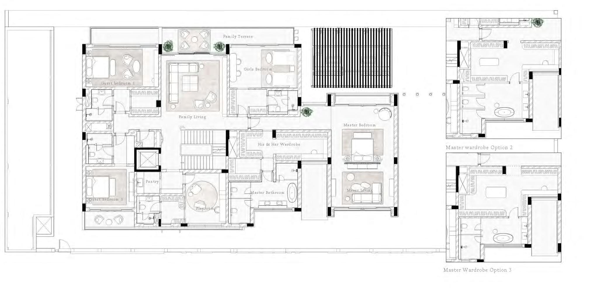 Drawing from Dubai’s desert landscape, warm sand-inspired hues are layered with natural materials to create a sense of depth, softness, and continuity. Subtle contrasts and tactile surfaces replace visual noise, allowing light to enhance material richness and atmosphere. This approach fosters a calm, cohesive environment—where luxury is felt rather than seen, redefining it through restraint, warmth, and precision.