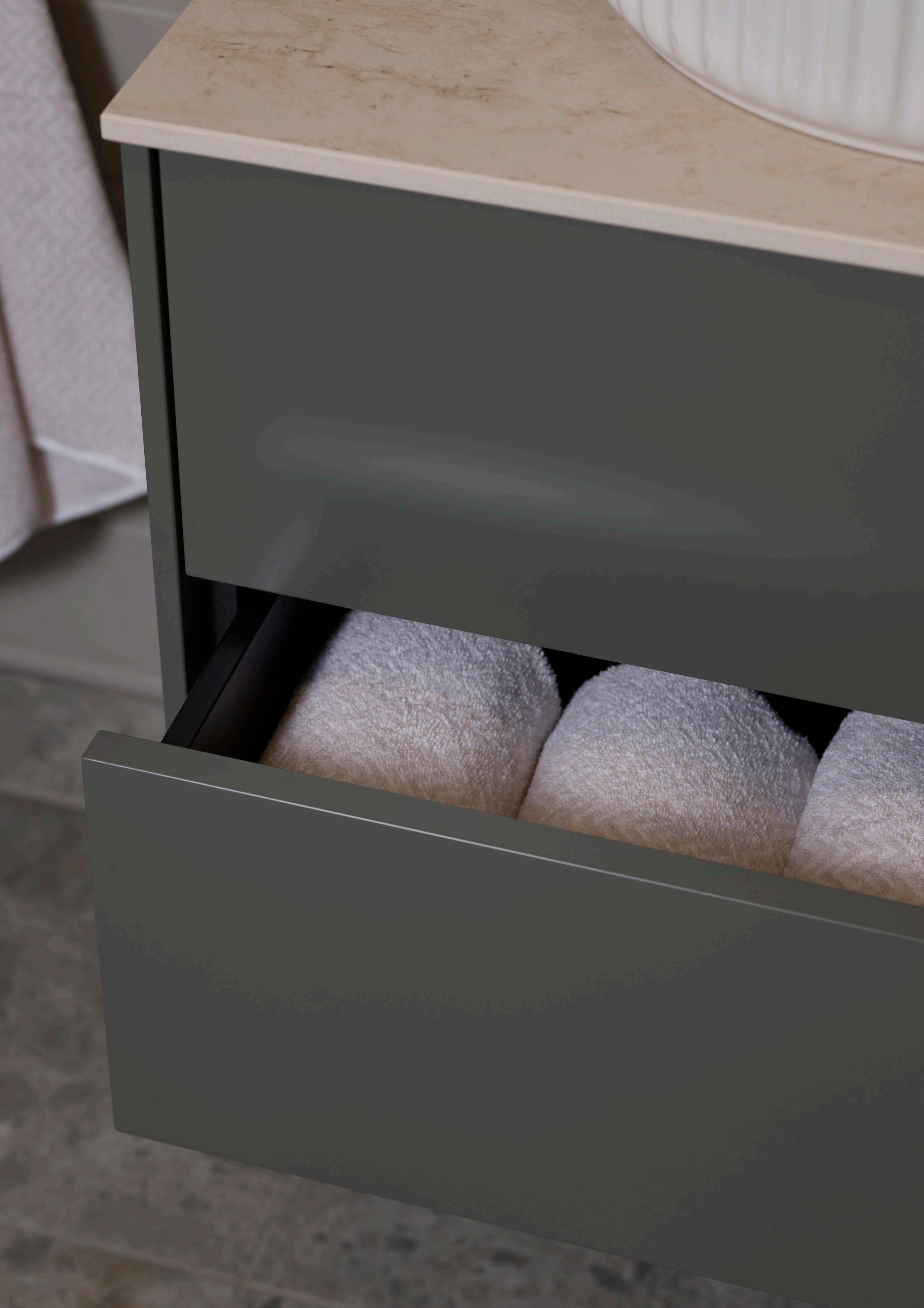 En åben æske, der er både stilfuld og praktisk. Kassen er udført i galvaniseret metal og fås med træfront malet i samme farve som fronten. Dette er valgfrit. Til Epos’ nederste skuffe kan du tilvælge en praktisk skuffeindretning.