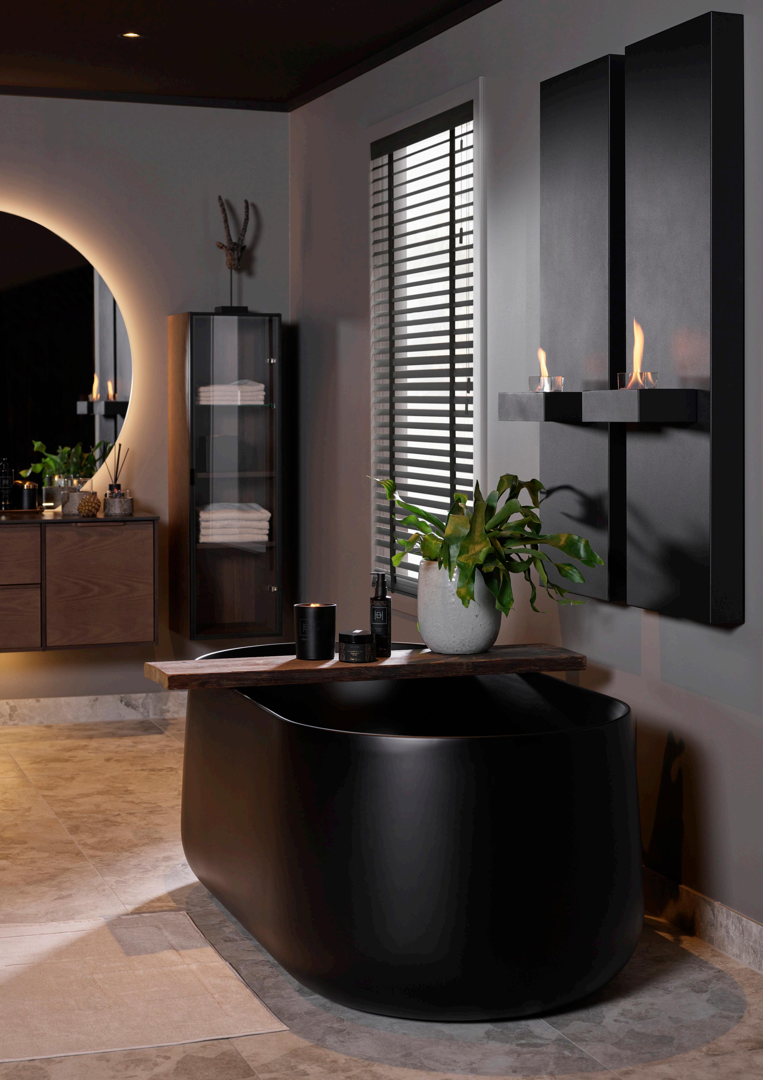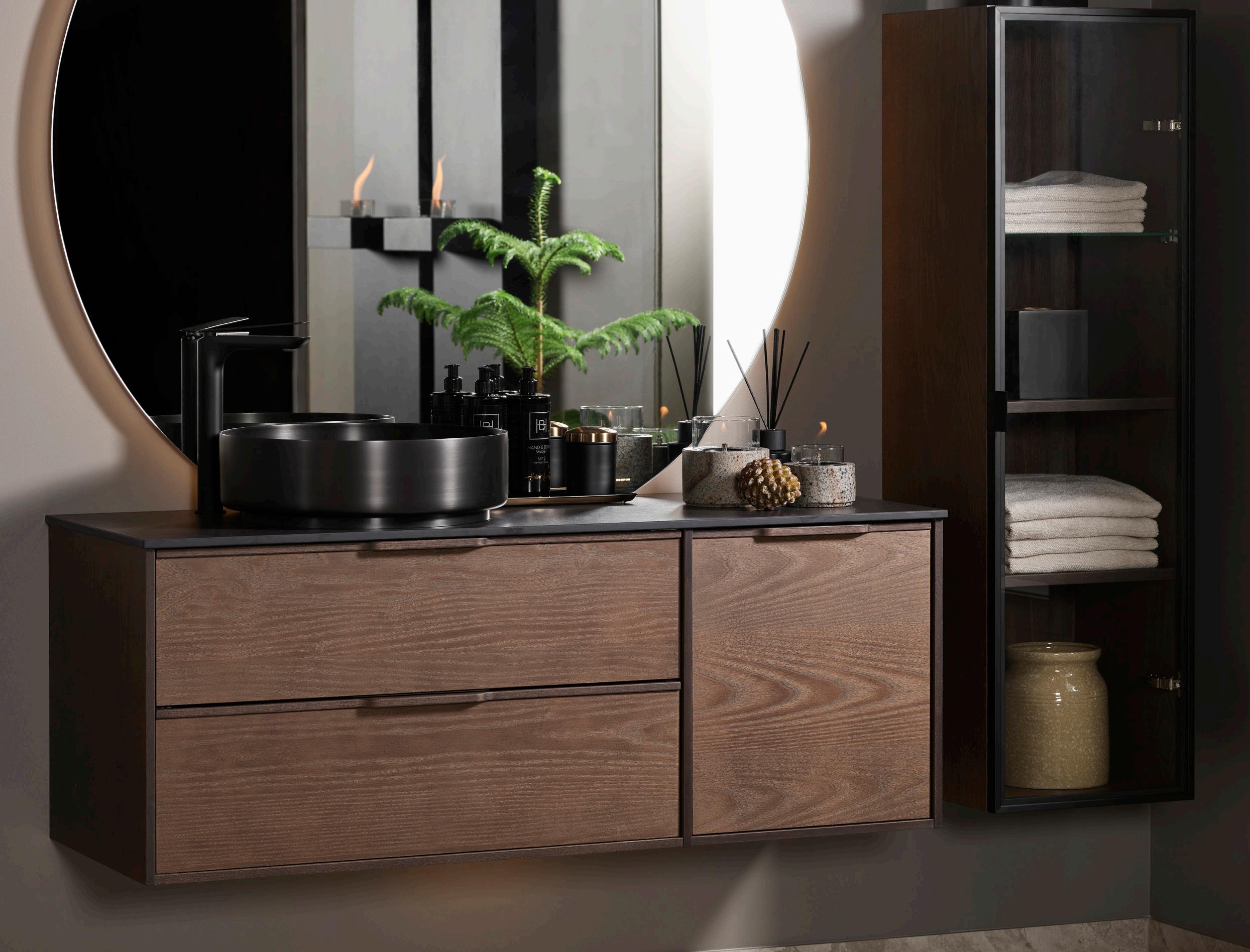 Moderne designudtryk i forskellig konfiguration, farve og funktion. Integreret eller fritstående håndvask. Til det mellemstore og store badeværelse.