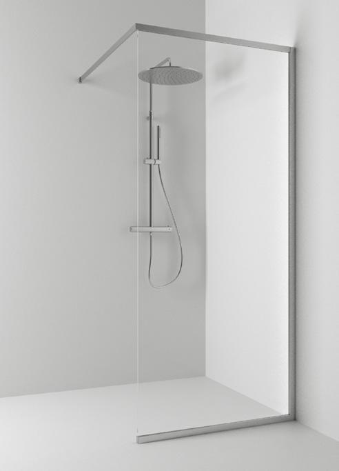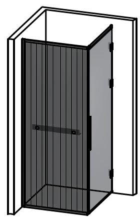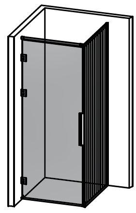 • Leveres komplet med monterbar hylde, der monteres på glasset, gardinstang (maks. 105 cm), gulv- og vægprofil til justering op til 20 mm, plus en åbningsbar foldedør.