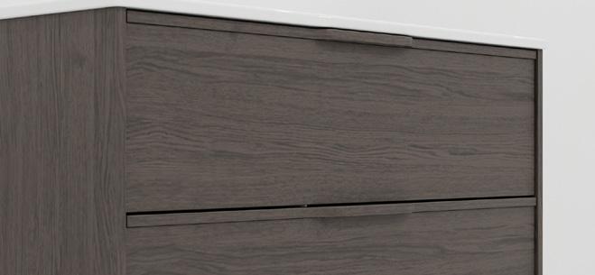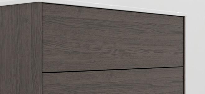 En elegant og moderne front med rene linjer. Rillerne er desuden tilpasset, så de kan kombineres med alle håndtag for at opnå forskellige stilistiske udtryk. Tilbydes i brun og