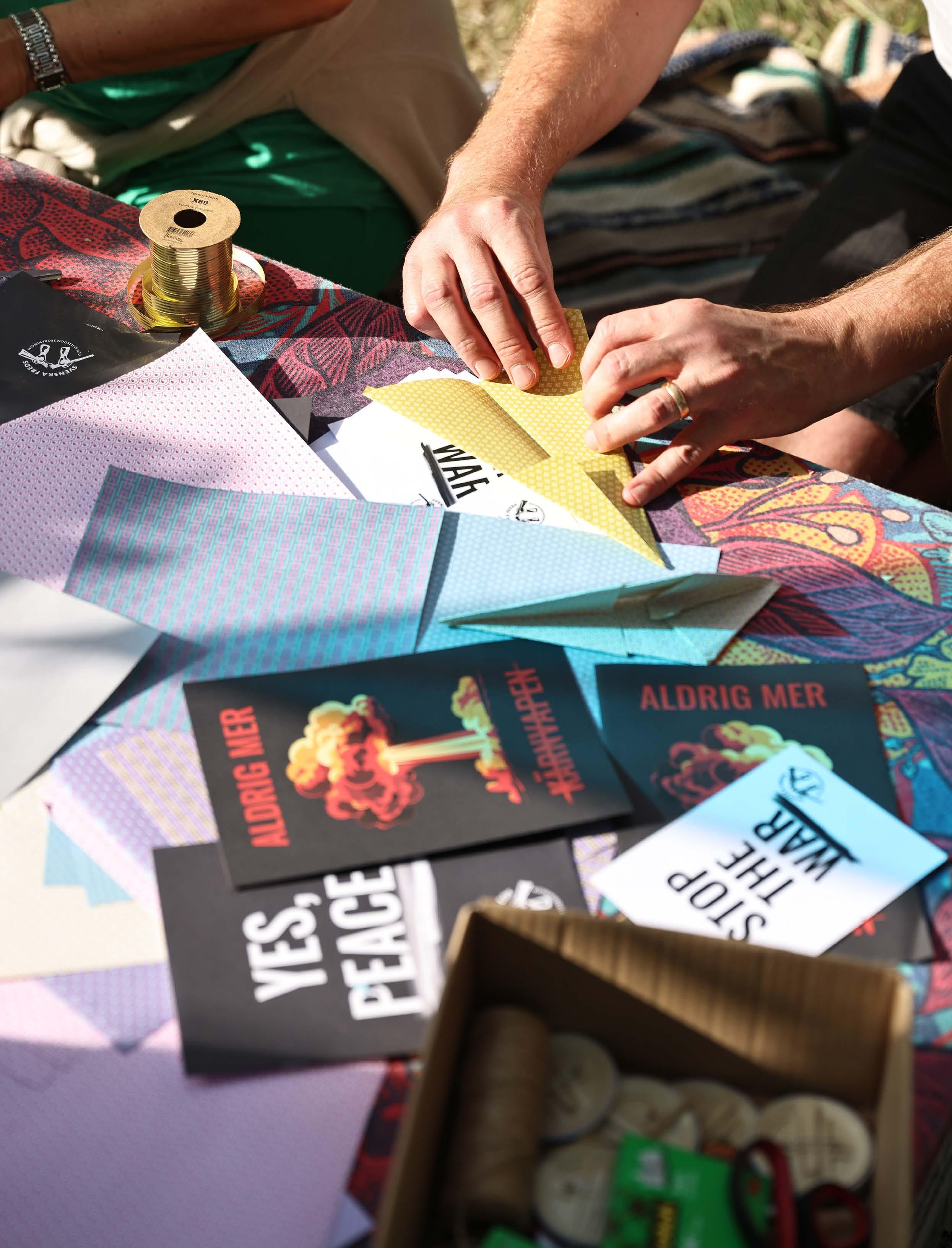 Under 2025 har Svenska Freds riksförening, lokalföreningar och fredsgrupper spridit kunskap och skapat engagemang genom samtal och möten med människor på många olika arenor. Som ett exempel var Svenska Freds del av Action Village med bland andra Greenpeace och Amnesty vid musikfestivalen Rosendal Garden Party i Stockholm. Vi bidrog med samtal med besökare som kunde vika pappersdrakar som en symbol för barnen i Gaza och med programpunkter på scen om bland annat Palestina och kärnvapen. Kända profiler som Julia Dufvenius, Maria Lundqvist och Nora Khalil medverkade.