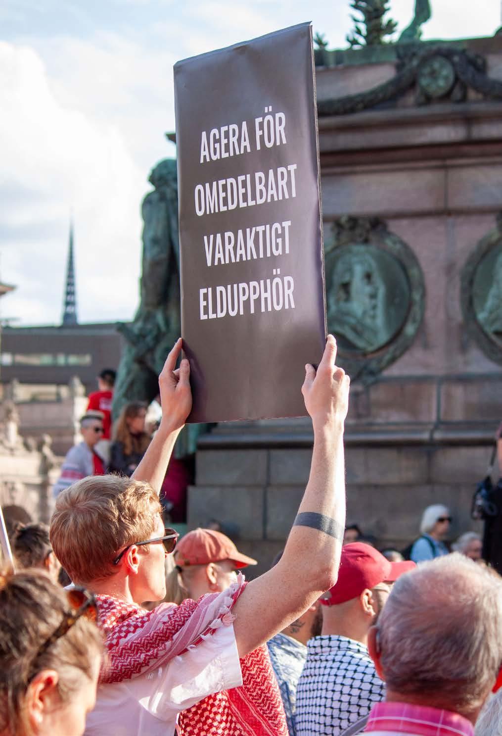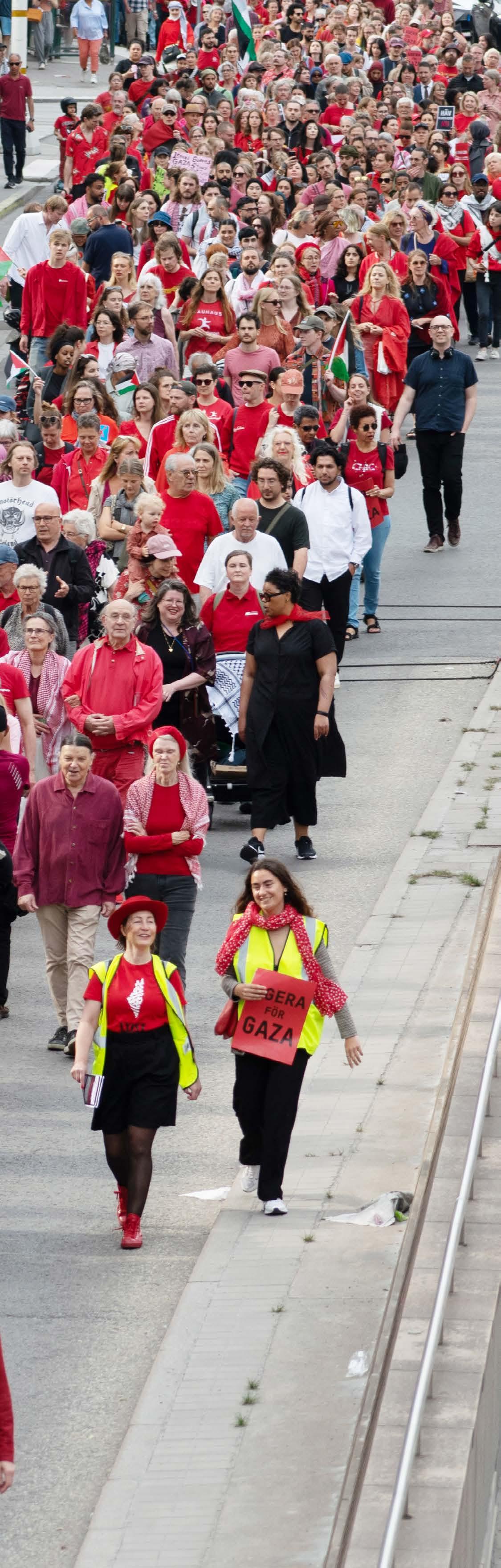 Trots att politiken på många sätt gått i motsatt riktning har motståndet och vår mobilisering vuxit. Aktionerna Röda linjen och Läs barnens namn utmärkte sig särskilt som kraftfulla sätt att samla många människor och öka trycket i frågan. I juni samlade Röda linjen 30 organisationer och omkring 15 000 deltagare i en gemensam demonstration med krav på att Sveriges regering agerar för Gaza. I oktober tog Svenska Freds för andra året i rad initiativ till manifestationen Läs barnens namn på Odenplan i Stockholm, en tio timmar lång uppläsning av namnen på de barn som dödats i Palestina och Israel sedan 7 oktober 2023. Manifestationen samlade 23 organisationer och ett stort antal deltagare. Bland de som deltog fanns riksdagspolitiker, språkrör, artister och skådespelare, däribland Özz Nûjen, Linnea Henriksson, Valter Skarsgård, Daniel Adams-Ray och Melissa Horn.