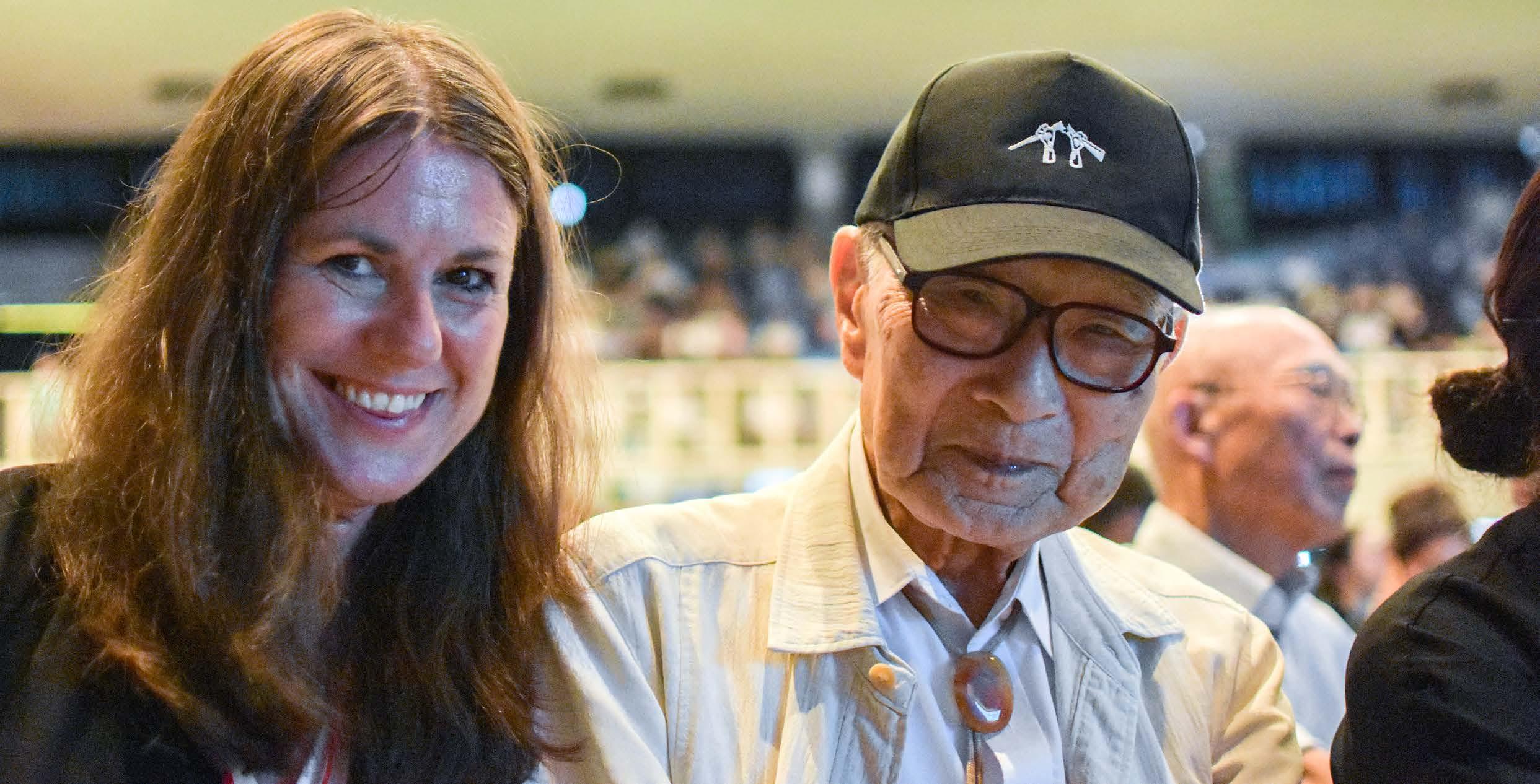 Svenska Freds ordförande Kerstin Bergeå tillsammans med kärnvapenöverlevaren och Nobelpristagaren Terumi Tanaka.