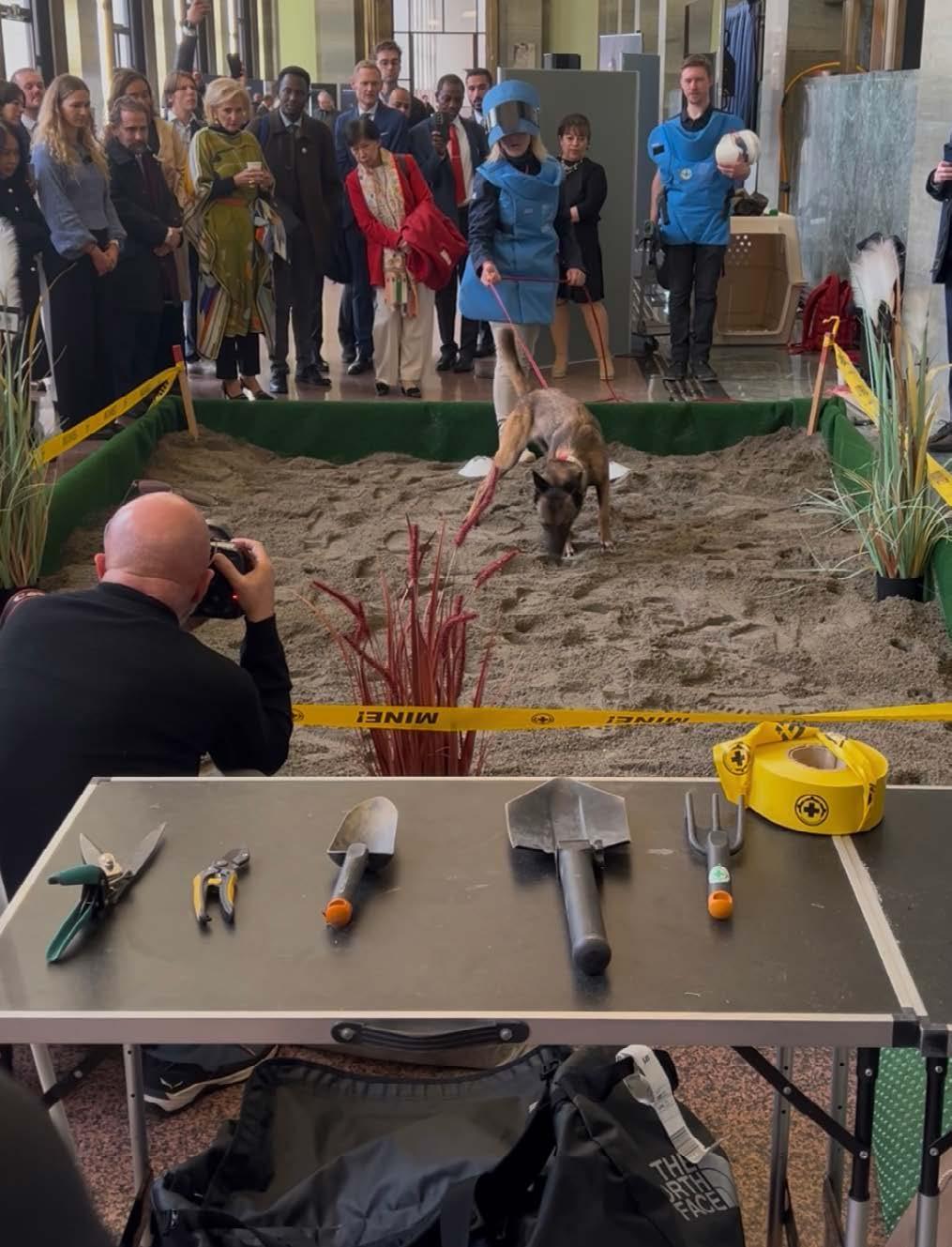 Demonstration av minröjning vid statspartsmötet i Geneve.