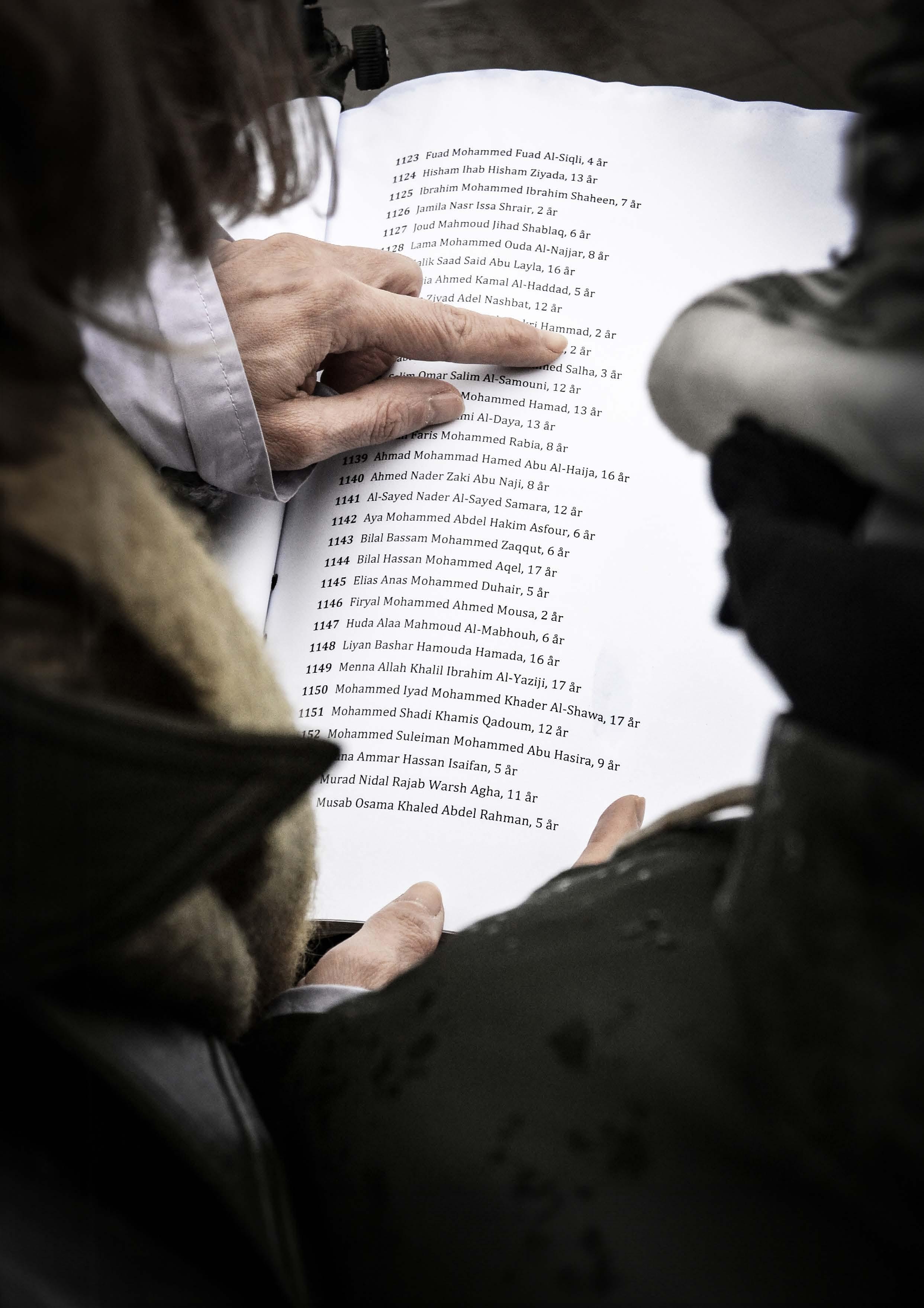 På tio timmar hann vi läsa upp en tredjedel av de 18 726 namn på barn som dödats i Palestina och Israel sedan den 7 oktober 2023. Foto: Per Lindman