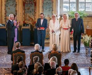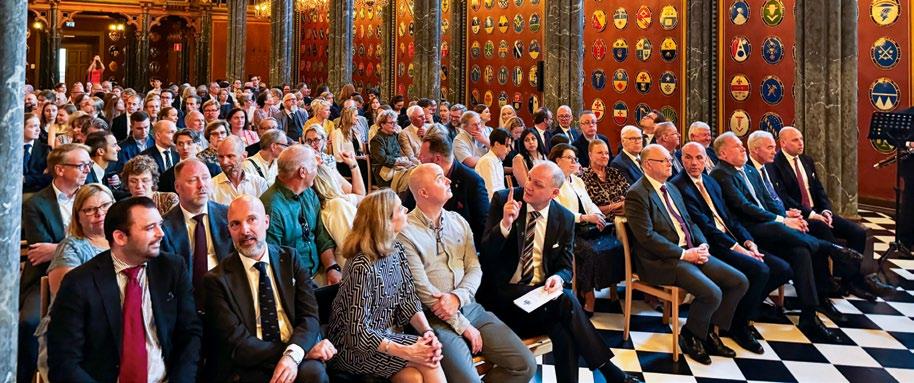 Söndagen den 26 maj började med att Bankettsalen i Stamhuset hade förvandlats till en gigantisk konsthall. Det blev som vanligt en hastig titt på vad utställarna hade att bjuda på innan samlingen i Stamhusets johannessal, där vi hälsades välkomna av Jubelfondens ordförande Joachim morath. Och redan i Stamhusets trapphus hördes ljuvlig stråkmusik strömma ut från r iddarsalen.