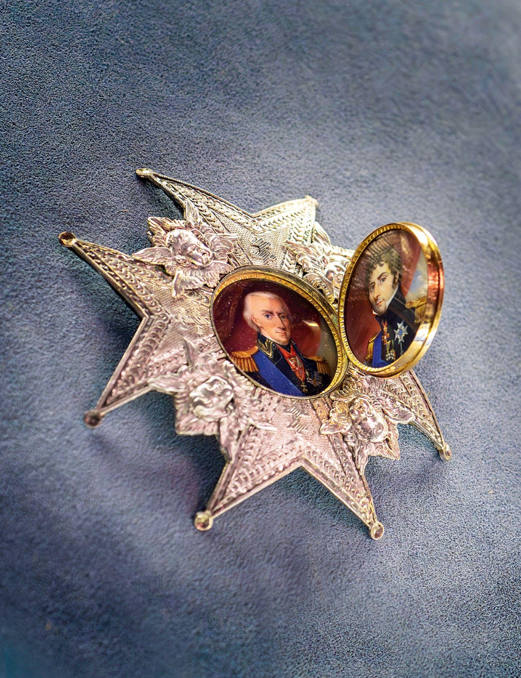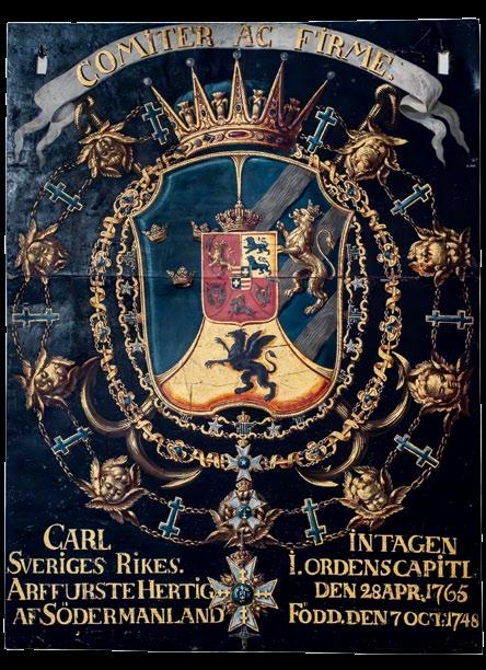 en kraschan för Serafimerorden. Bakom locket i mitten, frimurarbröderna Karl Xiii och Karl XiV Johan, båda bärandes Carl Xiii:s Orden. | bild: Mats Gartz