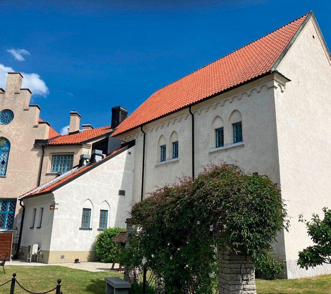 Andaktsstund i S:t Laurentii kyrkoruin med direkt ingång från Frimurarhusets trädgård.