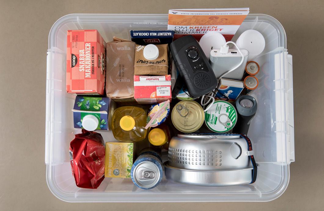 MSB har tagit fram exempel på vad man kan ha hemma i en ”beredskapslåda”.