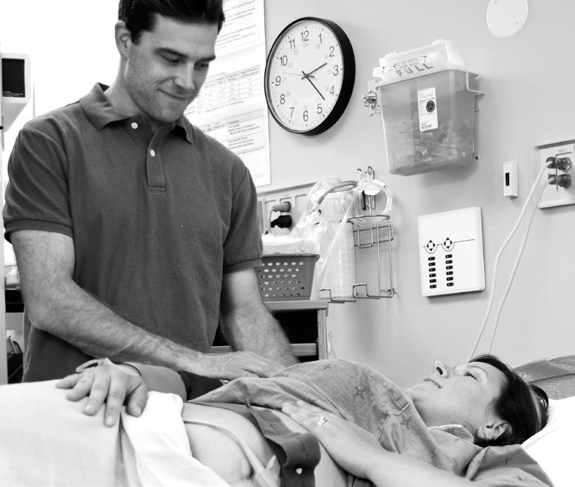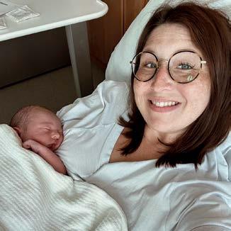 JAG ÄLSKADE ATT vara gravid och hade en oförskämt lätt graviditet. Jag gick bara upp sju kilo och kunde ha min vanliga vinter jacka fram till sista veckan. Den första värken kom 19.25. TENS-apparaten som jag hade lånat hjälpte inget vidare. Något som hjälpte väldigt bra var att stå i duschen. Det är helt otroligt vad varmt vatten kan lind ra smärta! Jag ringde in till förlossningen när det var tio minuter mellan värkarna och fick rådet att vänta. Vi åkte in klockan 22 (cirka 45 minuters resväg) och jag blev undersökt kl 23. Jag var öppen tre centimeter. Jag bad min sambo (numera man) att pressa ihop höfterna på mig under värkarna. Klockan 24 fick jag bada, det lindrade bra. Barn morskan tyckte att det var dags att kliva upp 1.45, då började det bli riktigt jobbigt. Att sitta på huk i vatten verkade ha drivit på förloppet rejält, för nu var jag öppen 8 cm och hade starka värkar. Jag ville ha något att hålla i och spjärna emot med fötterna på, men de envisades med att jag skulle ha fötterna i byglarna. Det hela kändes overkligt och panikartat. Jag fick syrgas som lugnade något. Jag tror att de stack hål på fosterhinnan så vattnet gick. De sa att jag var öppen tio centimeter och att det var dags att krysta. Jag som hade velat ha epidural!