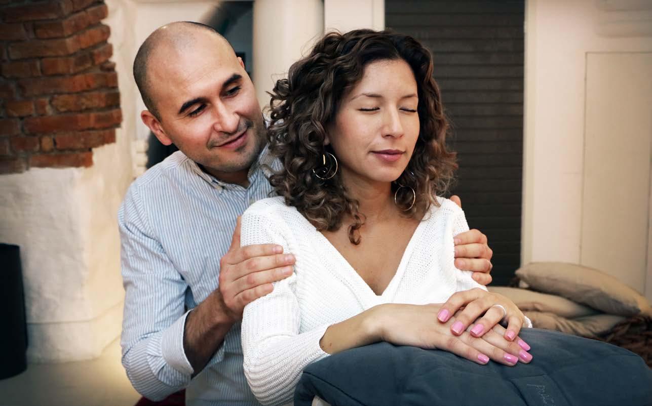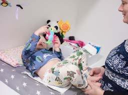 3 Barnet ska ligga med magen mot din mage och ha ansiktet rakt mot bröstet.