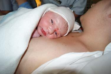 Det nyfödda barnet brukar vara som piggast första timmarna efter förlossningen. Det är bäst att ligga hud mot hud, då ökar mjölkproduktionen och barnets sök- och sugreflexer. Hudkontakten gör att barnet håller sig varm, blir lugnare och stärker banden till föräldern.
