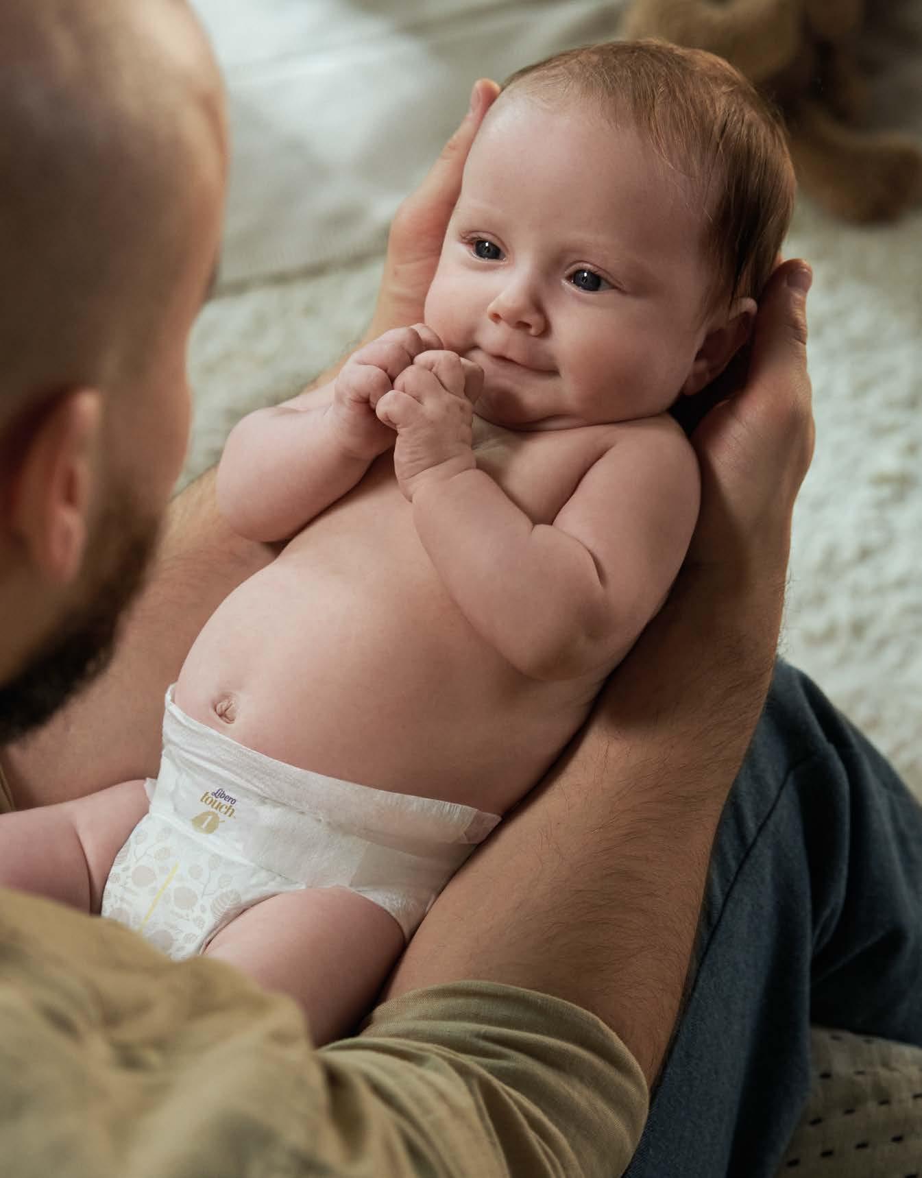 Våra blöjor är nämligen fantastiska. De är mjuka som moln och varsamma mot ditt barns hud, de har skön passform och e ektiv uppsugningsförmåga, så du kan känna dig trygg med att ditt barn är torrt. Prova så får du se – gör ett riktigt viktigt blöjbyte!