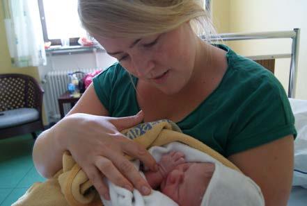 Klockan 02.09 föddes vår flicka, lades på mitt bröst i två sekunder men togs sedan snabbt ut för att få igång andningen. Hon hade bajsat i fostervattnet och dragit in i lungorna så de fick suga ur det och sedan lades hon i respirator. Det var fruktansvärt för mig att ligga där och inte veta vad som hade hänt eller om vårt barn ens levde. Sambon var i alla fall med henne och kom snart in och berättade. Jag fick ut moderkakan och blev ihopsydd. Vi fick träffa Saga på neonaltal-avdelningen innan hon vid 11-tiden fick åka med helikopter till Karolinska i Uppsala, där hon kunde få bästa vården. Snacka om flygande start! _