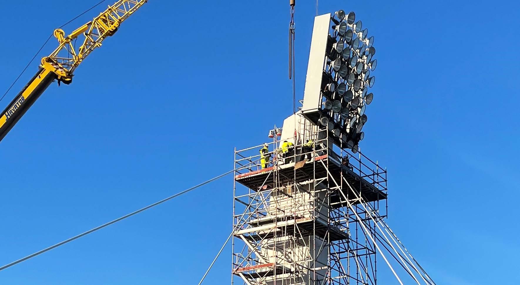 Bärlinorna är fästa i de 53 meter höga betongpylonerna som även förser arenan med stålkastarljus. FOTO: LEE KEARNEY/HIGAB