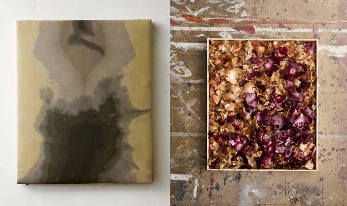 Ljudtavlorna i serien Kompost har fått sina färger och mönster genom experimentera med material och matavfall.