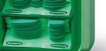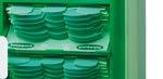 Den gröna plasten i våra stationer och dispensrar tillverkas nu av mer än 85% återvunnen plast från gamla kylskåp. Förut hindrade den mat från att bli dålig, nu kan den rädda liv på din arbetsplats.