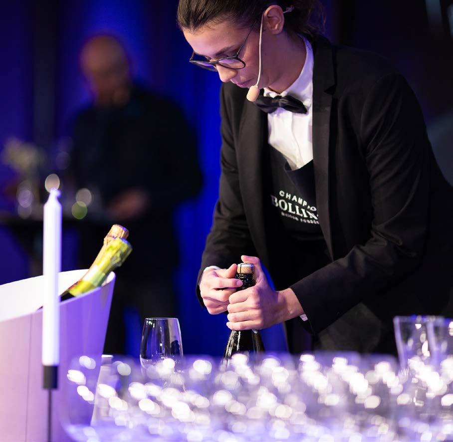 Det finns flera olika moment i både öppnandet och servering som bedöms av juryn.