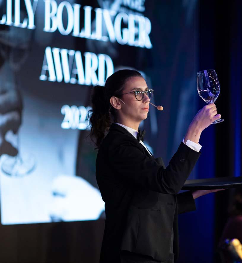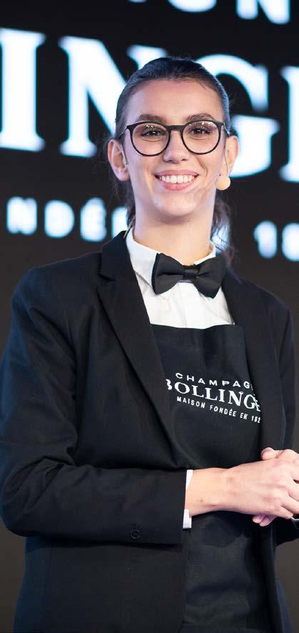Hon berättar att i Lily Bollinger tävlingen så är uttagningen uppbyggd i tre delar - ett teoriavsnitt, en blindprovning och ett praktiskt moment. Svårighetsgraden ska vara i nivå med nationella sommeliertävlingar men inte riktigt på internationell nivå, däremot är tävlingsmomenten så lika dem som möjligt. Under finalen sker de teoretiska delarna dag ett och de praktiska momenten sker inför publik dag två.