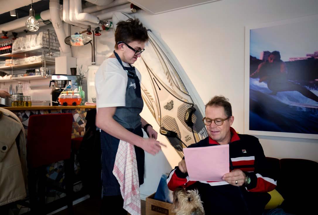 Sidan 46: Lars Nyström startade ett café för att ge funktionsvarierade jobb. Sonen har Downs syndrom, är 18 år och en hejare på att servera.