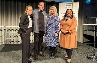 Emmy Pettersson, vd på SSIL, Jonas Ahl, Stiftelsen Insats skyddat boende, socialtjänstminister Camilla Waltersson Grönvall och Maria Fischer, Stiftelsen Insats skyddat boende.