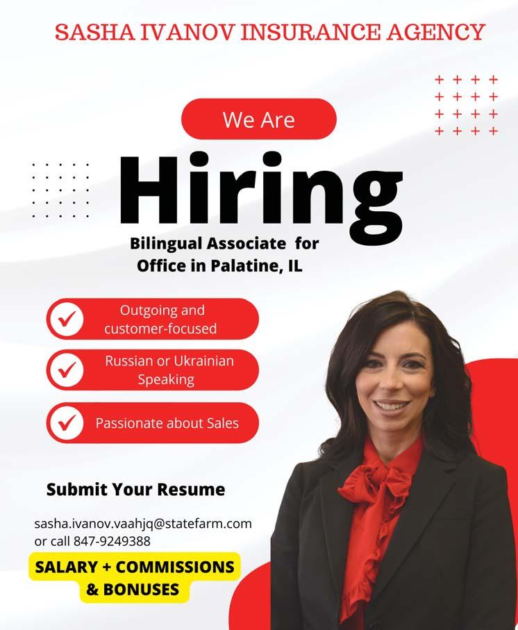 38 FRIDAY | September 9, 2022 | №5928 ТРЕБУЕТСЯ Real Estate Development office located in Northfield, IL is looking to hire: 1. ADMINISTRATIVE ASSISTANT 2. ASSISTANTMANAGERPROPERTY