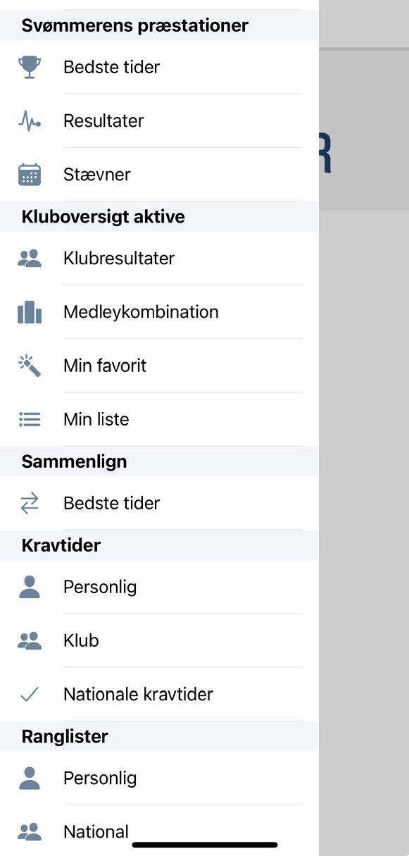 • der er adgang til stævnekalenderen, resultater for afviklede stævner og alle svømmernes ranglisteplaceringer?
