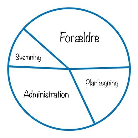 Cirklen illustrerer fordelingen af trænerens opgaver og tid.