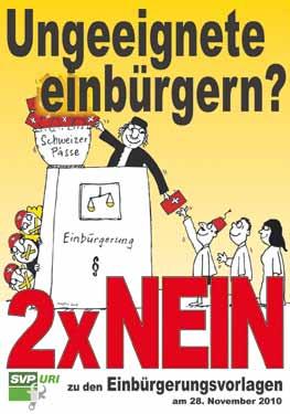 Elle refuse en outre catégoriquement une nouvelle loi sur la citoyenneté car celle-ci réduirait fortement les obstacles à la naturalisation, n’offre pas de critères de naturalisa tion concrets et permettrait ainsi de naturaliser quasiment n’importe qui. Une telle réglementation serait de plus contraire à l’initiative UDC sur le ren voi, étant de notoriété publique que les «Suisses sur le papier» ne peuvent pratiquement plus être renvoyés.