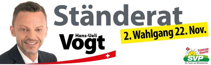 Liebe SVP-Mitglieder, geschätzte SVP-Sympathisanten. Der Wahlkampf zum zweiten Ständeratswahlgang ist voll im Gange. Standaktionen, Mobilisieren auf Social Media, Pressetermine und Podien stehen jeden Tag zur Genüge auf dem Programm, von denjenigen, welche sich aktiv für Hans-Ueli Vogts Wahlkampf einsetzen.