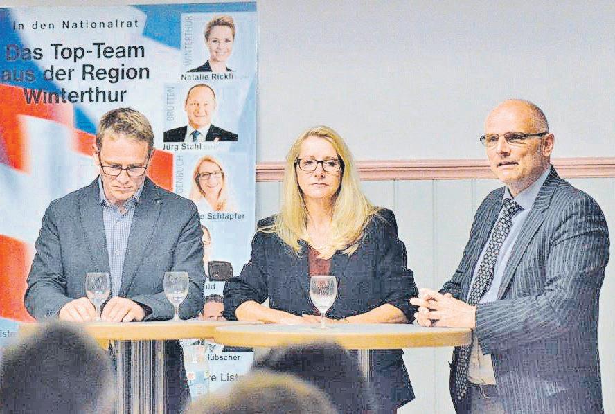 Samstag, 19. September 2015, 9.00 Uhr, Restaurant Taverne zum Hirschen (Saal), am Lindenplatz, Winterthur-Wülflingen, Diskussion bei Kaffee und Gipfeli mit den Nationalräten Natalie Rickli, Thomas Matter und Jürg Stahl, mit den Nationalratskandidaten Therese Schläpfer, Daniel Oswald, Martin Hübscher und Wolfram Kuoni sowie Ständeratskandidat Hans-Ueli Vogt.