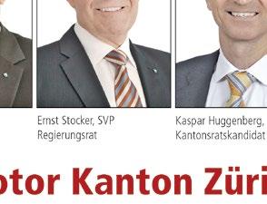 «Stabilität und Sicherheit» lautet das Motto der SVP-Kampagne für die Kantons- und Regierungsratswahlen 2015. Die erfolgreiche Arbeit der SVPKantonsratsfraktion in den letzten vier Jahren ist nicht zuletzt auch das Produkt der konstruktiven und immer im Dienste der Zürcher Bevölkerung arbeitenden SVP-Regierungsräte Kägi und Stocker. So konnte z.B. der Zürcher Richtplan, ein Mammutwerk mit einer rund 20-jährigen Lebensdauer, ganz im Sinne der bürgerlichen Mehrheit verabschiedet werden: Die von der Bevölkerung gutgeheissene Kulturlandinitiative wird eingehalten (so ist z.B. das Siedlungsgebiet im aktuellen Richtplan kleiner als in jenem aus dem Jahre 1995 trotz massiv gestiegener Bevölkerung) und trotzdem kann sich der Kanton prosperierend weiterentwickeln. Aber