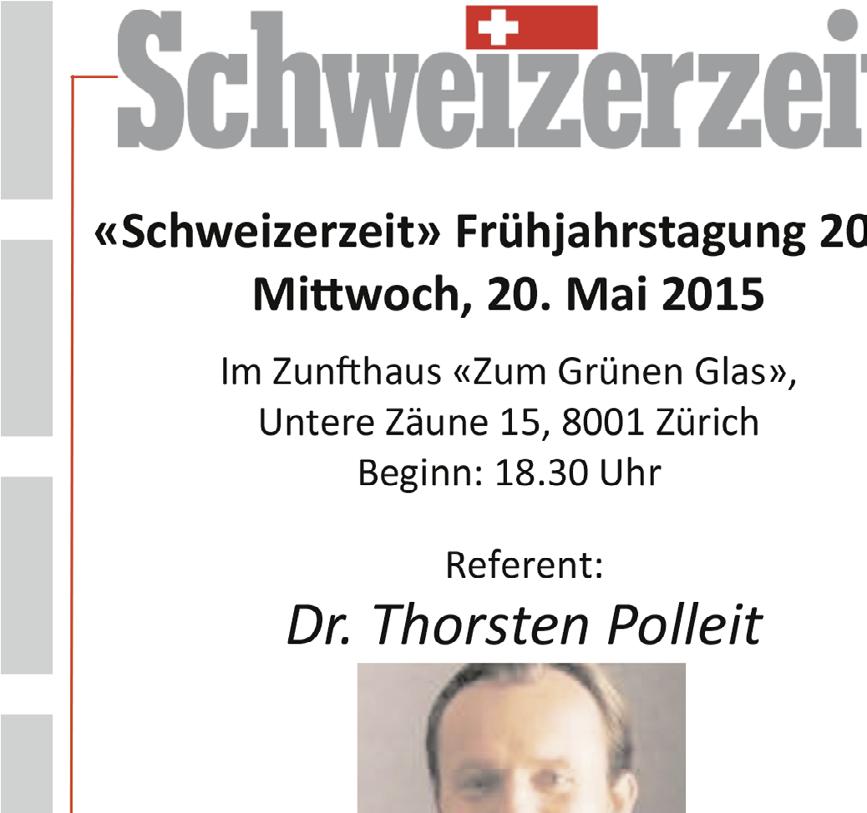 Donnerstag, 21. Mai 2015, 19.30 Uhr, Rest. Mercure Stoller, Zürich, Mitgliederversammlung.