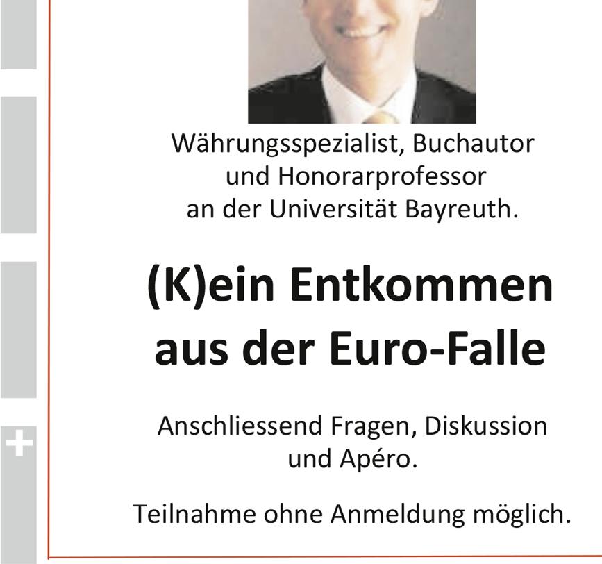 16 60 -6701 ISSN 2296 –3 480 Er scheint jeden Freitag. Inseratenannahme: prin t- ad kret z gmbh Fr edi Kr et z, Tr ams tr asse 11