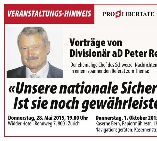 Dienstag, 26. Mai 2015, 19.00–21.30 Uhr, Hotel Banana City, Winterthur, Informations- und Pressekurs zum Thema «Stopp dem schleichenden EU-Beitritt!» unter Leitung von Nationalrat Hans Fehr und alt Nationalrat Ulrich Schlüer. Kommen Sie einfach «auf den Platz»! Auskünfte bei Hans Fehr, 079 341 54 57.