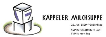 Kappel am Albis, 5. Historischer Gedenktag, Kappeler Milchsuppe. Gastredner: Nationalrat Toni Brunner, Präsident SVP Schweiz und Nationalrat Christoph Mörgeli, Historiker. Eine Veranstaltung der SVP Bezirk Affoltern und der SVP des Kantons Zug.