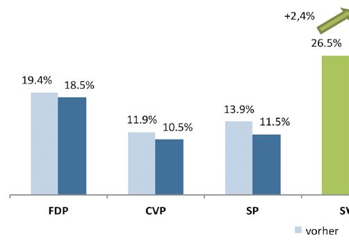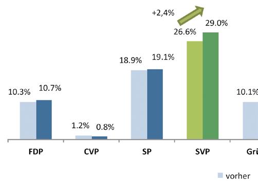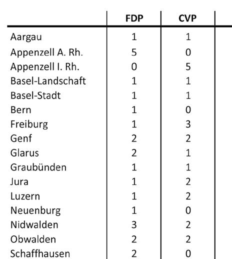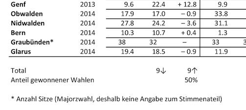 den Kantonen Thurgau (10 Sitze), St. Gallen und Schwyz (je 6 Sitze). Die Wahlen verloren hat die SVP in jenen vier Kantonen, in denen sie vier Jahre zuvor unmittelbar nach der Abwahl von Christoph Blocher aus dem Bundesrat und den sehr erfolgrei-chen Nationalratswahlen 2007 besonders stark zugelegt hatte (zum Beispiel in Uri: von neun auf 18, dann auf 14 Sitze).