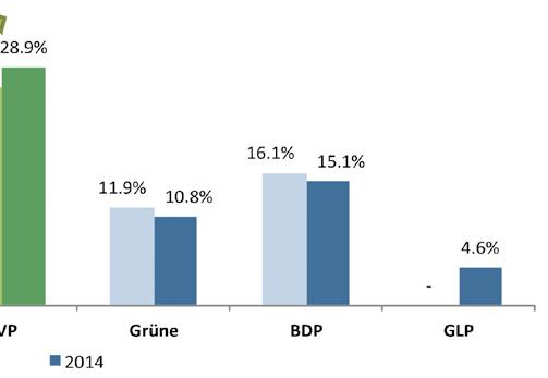Bereits bei den Wahlen ins Berner Kantonsparlament (Grosser Rat) im März 2014 konnte die SVP um 2,4 Prozent auf 29 Prozent Wähleranteil zulegen und distanzierte die übrigen grossen Parteien deutlich (SP +0,2 %, BDP – 4,8 %, FDP + 0,4 %, Grüne – 0,3 %). Sie ist heute ungefähr gleich stark wie die FDP, die BDP und die GLP zusammen (28,6 %).