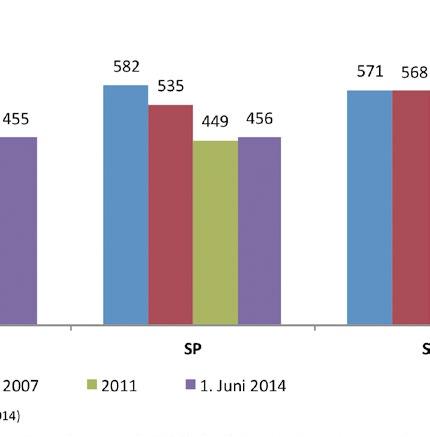 Entwicklung der Anzahl Sitze ausgewählter Parteien in den Kantonsparlamenten (Stand 1. Juni 2014)