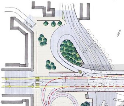 Inmitten der rechten Fahrbahn würde das Tram Hardbrücke zu liegen kommen.