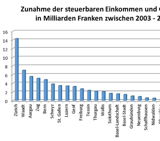 Die SVP Kanton Schwyz hat bekanntlich das Referendum gegen die neulich vom Parlament beschlossenen NFA-Zahlungen ergriffen. Einmal mehr ohne Unterstützung der anderen Parteien, obwohl das Geschrei gegen die NFA-Zahlungen aus allen Lagern sehr gross war. Plötzlich ist die Suche nach Gründen, weshalb das Referendum nicht unterstützt wird, grösser als Taten und der Einsatz für unseren Kanton und für unsere Bevölkerung. Geradezu grotesk erscheint in diesem Zusammenhang noch der Vorwand, das heutige Finanzdebakel hätten die SVP und FDP zu verantworten. Wer hat am 24. September 2000 nach beliebigen und planlosen Steuersenkungen in Folge die Steuergesetzrevision dem Stimmvolk verkauft, ohne die von der SVP aufgezeigten Folgen des NFA zu berücksichtigen? Wer hat dem Stimmvolk vorgegaukelt: «Die Haushaltbelastung durch das neue Steuergesetz ist für den Kanton tragbar.»? Heute tragen wir die Spätfolgen dieser Politik. Und bekanntlich sassen sechs der heutigen Regierungsräte damals noch nicht in der Regierung. Und wenn heute immer noch argumentiert wird, das Referendum gegen den NFA-Beschluss sei ein Bumerang, dann sollten sich auch die anderen Parteien einmal dem Grundproblem zuwenden. In der Zeit zwischen 2003 und 2011 haben die steuerbaren Einkommen und Gewinne im Kanton Bern um 4,808 Milliarden Franken zugenommen, im Kanton Schwyz dagegen «nur» um 3,82 Milliarden Franken (vgl. Grafik).