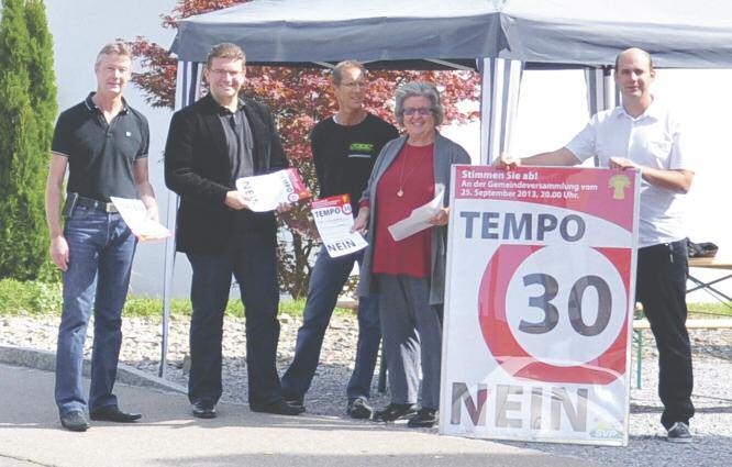 Gegen Tempo 30: Christian Meier, Tumasch Mischol und Mitkämpfer von der SVP