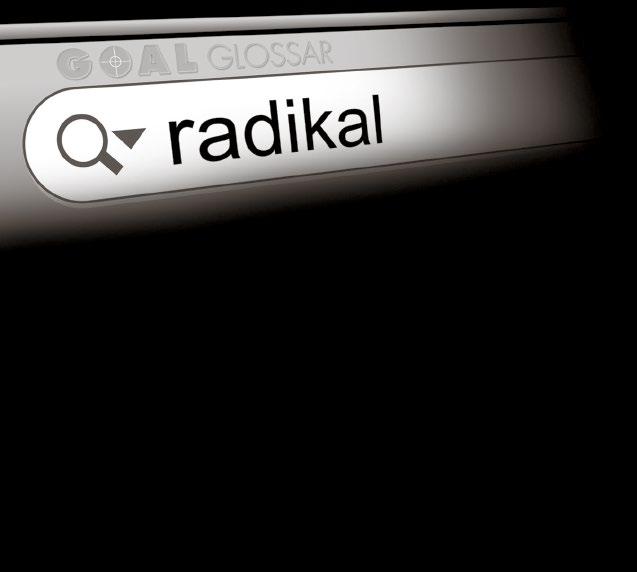 <lat.> radix (die Wurzel, der Ursprung), konsequent; gründlich