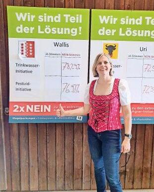 Anlässlich der Abstimmungsfeier des Zürcher Bauernverbandes in Höri gratulierte Romaine Rogenmoser (1. Vizepräsidentin) dem ZBV und den Bauern zum sensationellen Abstimmungsergebnis, das nicht zuletzt auch durch die tolle Unterstützung der SVP möglich wurde. Sie meint: «Die Bauern sollen sehen, dass wir uns für sie eingesetzt haben. Der Clou war natürlich, dass das Wallis das mit Abstand geilste Resultat bei den Agrarinitiativen hinlegte. Da war ich dann schon etwas stolz – deshalb das Bild vor der Walliser-Flagge.» Romaine Rogenmoser Kantonsrätin SVP, Bülach