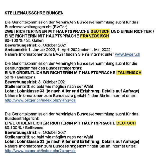 Die Alterslimite für Bundesanwälte soll für den Nachfolger von Michael Laufer auf Anfang 2022 in Kraft gesetzt werden. Auf die neue Altersgrenze von 68 Jahren hatten sich die Rechtskommissionen bereits zuvor geeinigt.