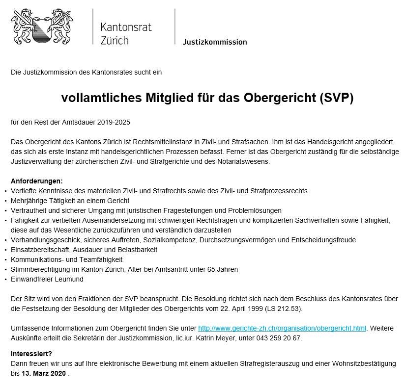 Wie üblich nach diesem Zeremoniell ging es um die Verteilung der freiwerdenden Kommissionssitze. Mit einigem Staunen nimmt die SVP-Fraktion zur Kenntnis, dass Neumitglieder (Neulinge ohne Parlamentserfahrung) von anderen Parteien ohne Umschweifen direkt in die Geschäftsprüfungskommission (GPK) beordert werden.