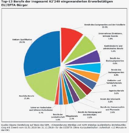 Im Jahre 2018 wanderten ziemlich genau 140 000 Personen neu in die Schweiz ein (Bruttozahlen). Davon haben genau 62 249 neu zuwandernde EU -Bürger einen Schweizer Arbeitsplatz angetreten. Bereits 2016 hat eine Studie des kantonalen Arbeitsamtes Zürich nachgewiesen, dass nur knapp 20 Prozent der vom Ausland geholten Arbeitnehmer in eine Stelle eintreten, für die sich kein inländischer Arbeitnehmer finden lässt. Nebst der irritierenden knapp 30 Prozent, die über eine «unklare Qualifikation» verfügen und daher kaum eine händeringend gesuchte Fachkraft sein können, sind auch just jene Berufe mit den höchsten Arbeitslosenzahlen am stärksten vertreten. Die gerne zitierten Krankenschwestern, Informatiker und Ingenieure sind jedenfalls zusammen zu 8,5 Prozent betroffen. Den ganzen Irrsinn der ex-