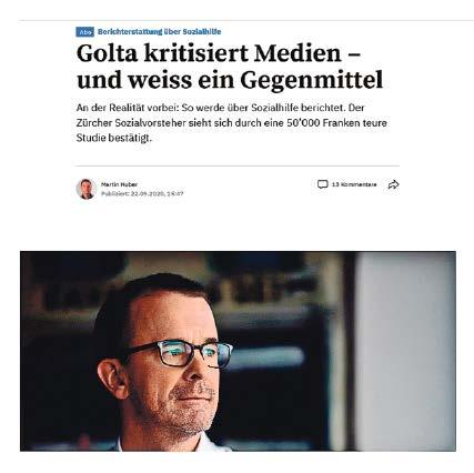 nosse Golta in einer intensiveren Vermittlung des solidarischen Grundgedankens. So jedenfalls lassen sich die Verbesserungsvorschläge auf einen Nenner bringen, welche die Studie den Medien empfiehlt. Hm. Etwas anders und wohl klarer ausgedrückt ist das schlicht und einfach die Aufforderung nach mehr journalistischer Gefolgschaft für die Optik faktisch grenzenloser Umverteilung. Interessant ist zweierlei: Man stelle sich einerseits die geharnischte Reaktion der unabhängigen Redaktionen auf ähnlich verklausulierte Medienschelte vor, wenn sie denn von einem SVPRegierungsmitglied angestossen worden wäre. Andererseits bringt es ein Leserkommentar im Tagionline hervorragend auf den Punkt: «In unserer Stadt sind wir nun schon soweit, dass der Stadtrat die Medien beurteilt bzw. verurteilt. Wenn schon sollte es umgekehrt sein. Was kommt als nächstes? Zensur oder Ausschluss von städtischen Medienkonferenzen? Entzug des Presseausweises? Unser Stadtrat ist mittlerweile etwas zu machttrunken.» Dem ist nichts beizufügen.